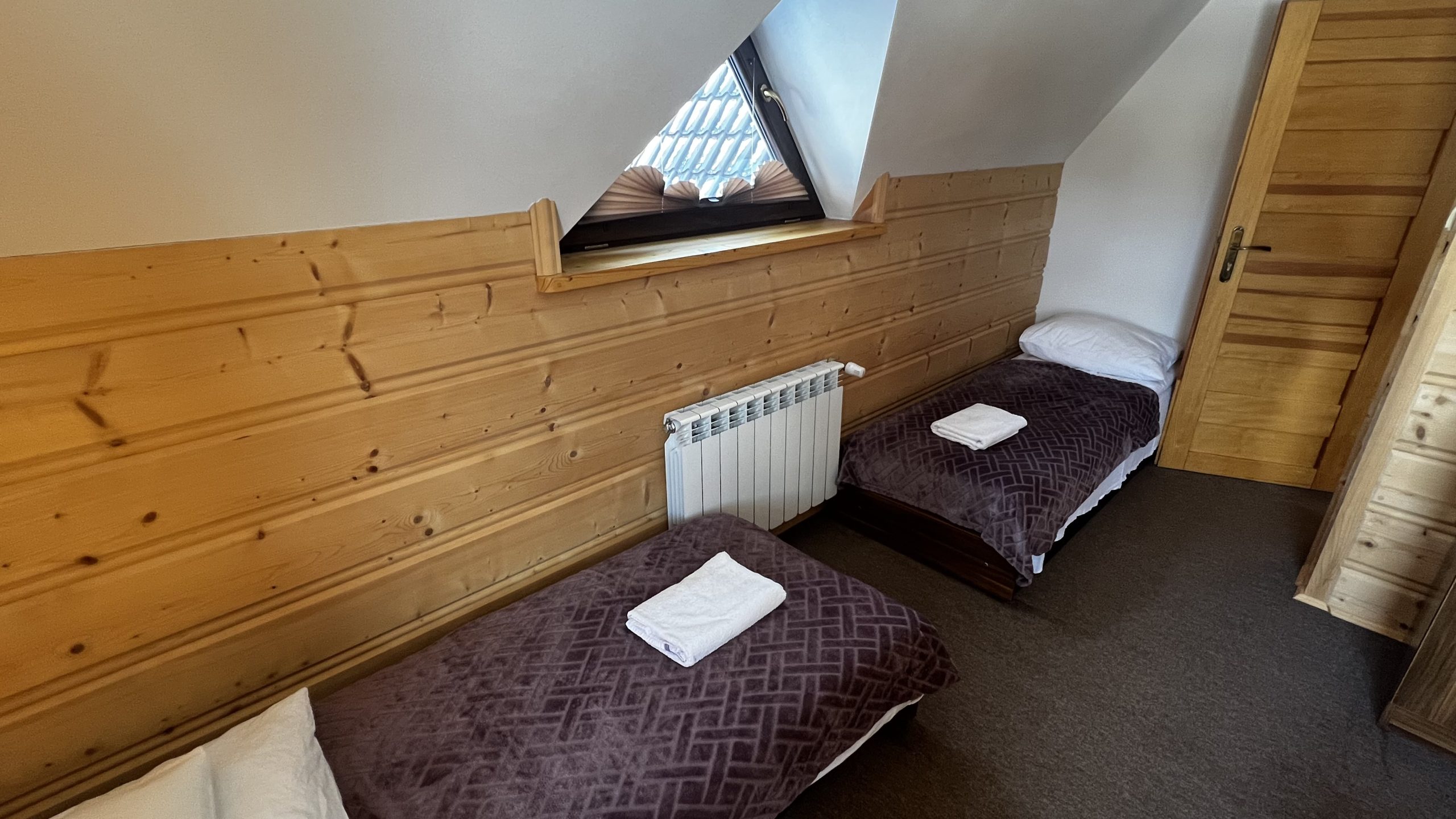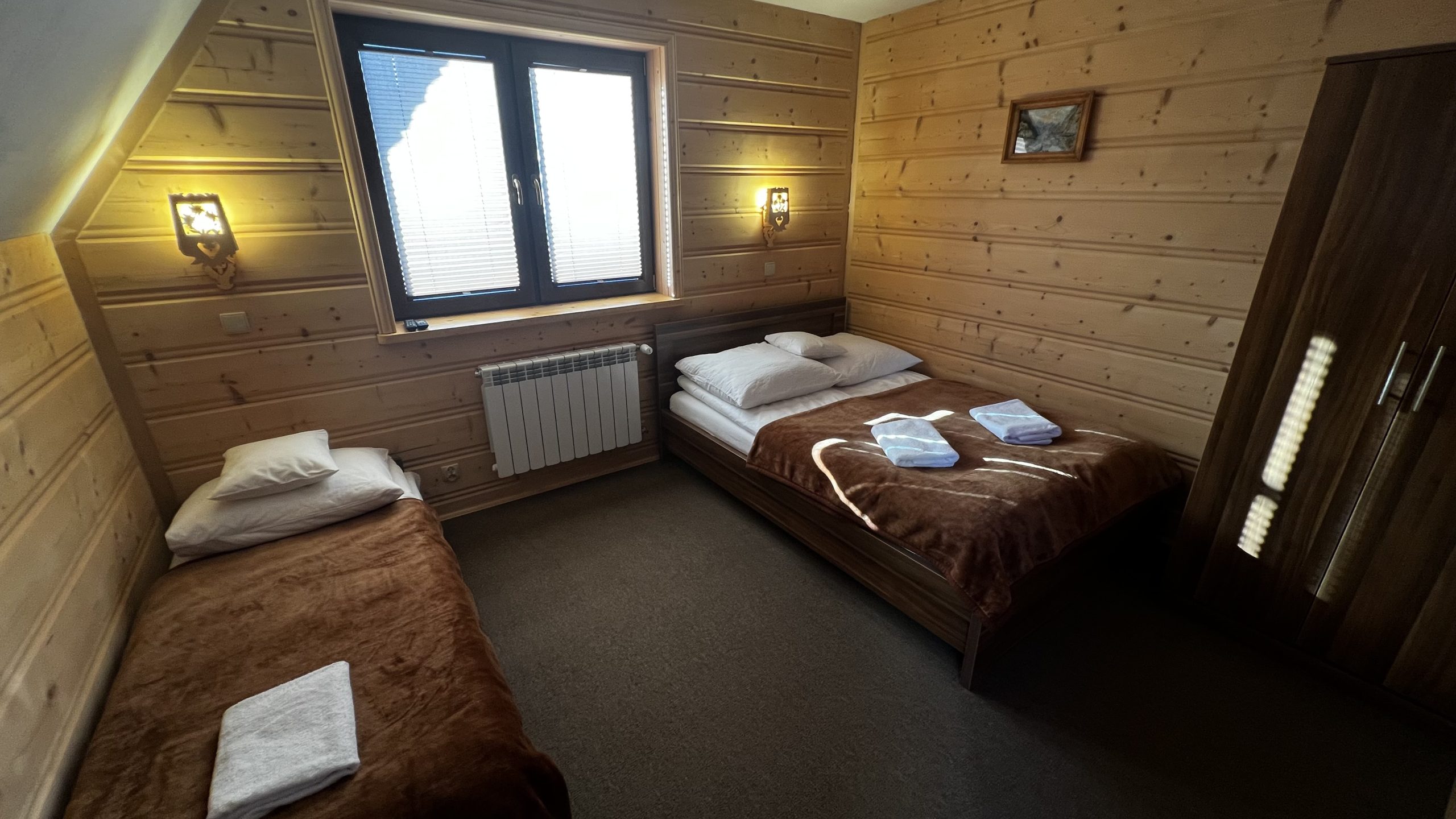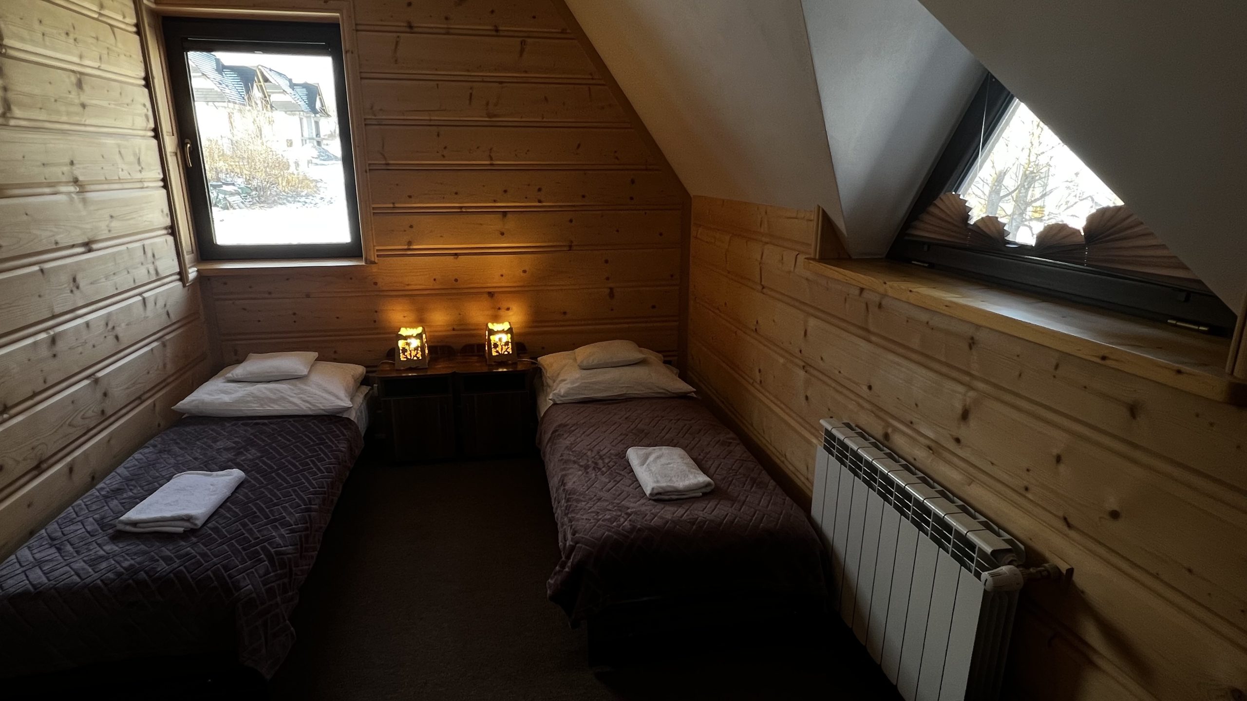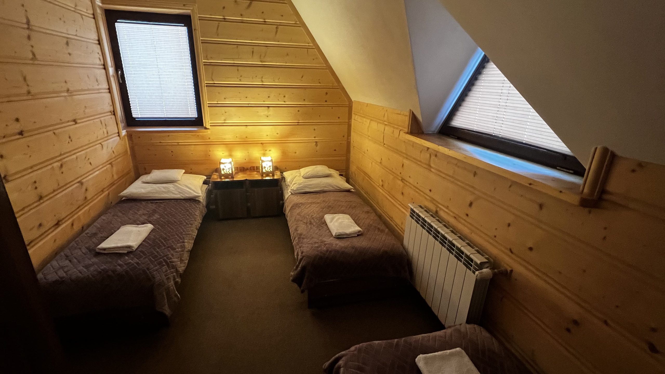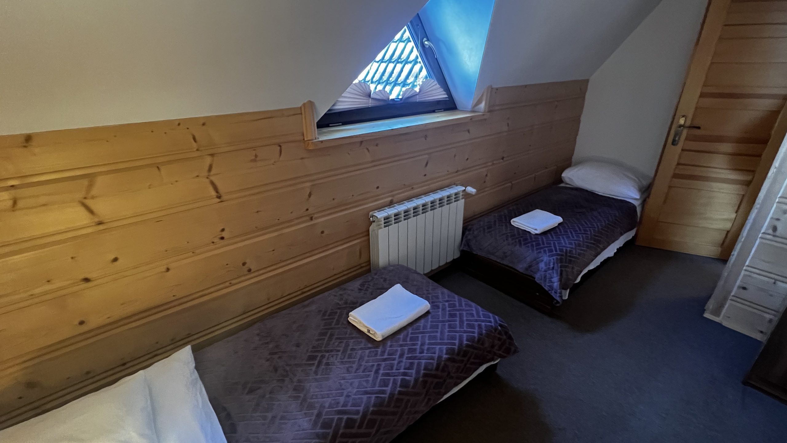 Pierwsza sypialnia posiada duże łóżko, druga sypialnia jest z trzema pojedynczymi łóżkami.