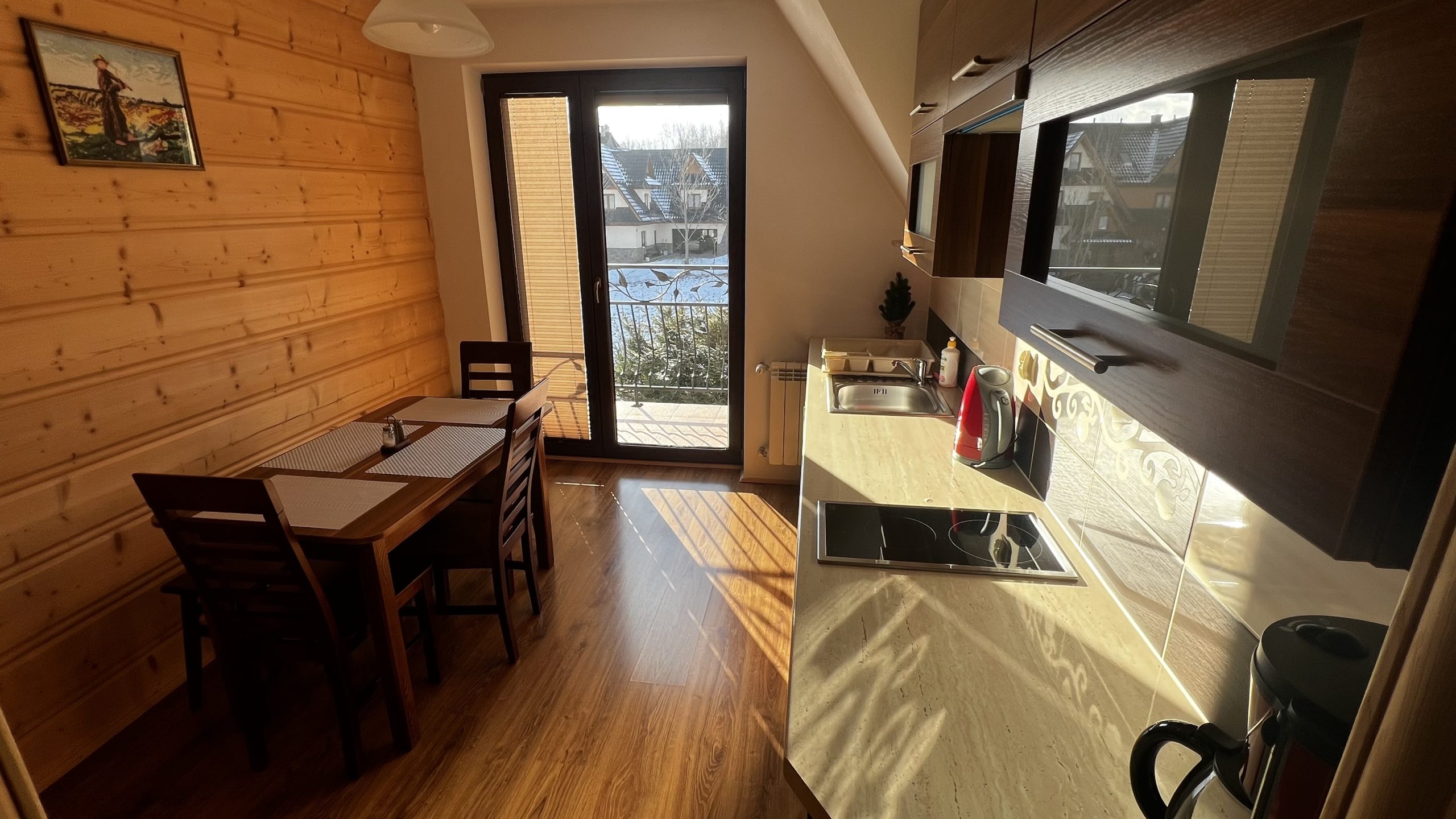 Z aneksu jest wyjście na balkon z pięknym widokiem na góry.